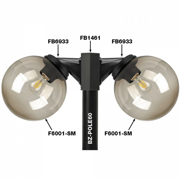 Can be used to mount onto the FB1461 post adapter to single or double mount globes onto the same pole.